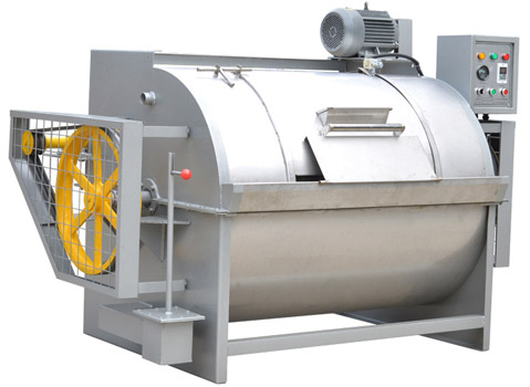 水洗機(jī)是滾筒型,內(nèi)、外殼采用優(yōu)質(zhì)不銹鋼制作而成,平整光滑、耐腐蝕、不損傷織物。水洗機(jī)由內(nèi)筒、外筒、電機(jī)、支撐總成、傳動(dòng)總成、電器總成組成。結(jié)構(gòu)合理、安裝使用方便。水洗機(jī)工作原理:由頂置電機(jī)、三角膠帶、帶動(dòng)傳動(dòng)總成,使內(nèi)筒作正反轉(zhuǎn)運(yùn)轉(zhuǎn),通過織物與織物、織物與內(nèi)筒壁的相互摩擦,達(dá)到洗滌效果。機(jī)器內(nèi)置過熱、過載裝置、定時(shí)裝置、正反轉(zhuǎn)控制裝置。水洗機(jī)外筒門設(shè)有安全裝置,若運(yùn)行中門被打開,機(jī)器立即停止運(yùn)轉(zhuǎn),確保機(jī)器、操作人員的安全。按容量大小分為:15kg、30kg、50kg、70kg、100kg、150kg、200kg等系列。該容量為干衣物的重量。