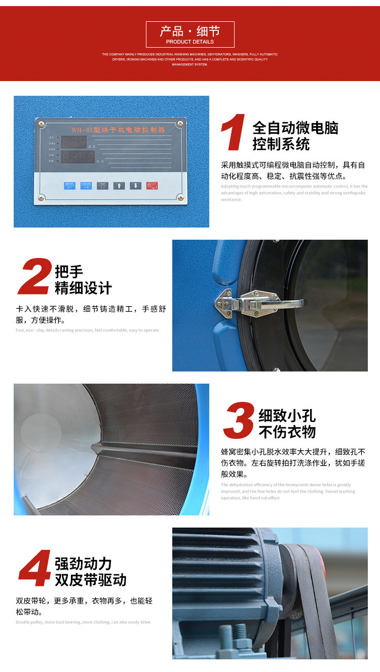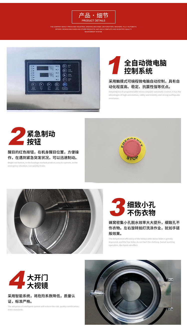 我公司專注于工業洗衣機,脫水機,水洗機等洗滌設備的生產,同時我司為特殊用戶訂制非標洗滌機械。熱忱歡迎廣大客戶來電咨詢產品信息。