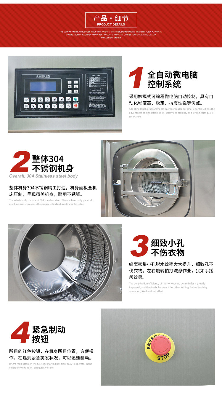我公司專注于工業洗衣機,脫水機,水洗機等洗滌設備的生產,同時我司為特殊用戶訂制非標洗滌機械。熱忱歡迎廣大客戶來電咨詢產品信息。